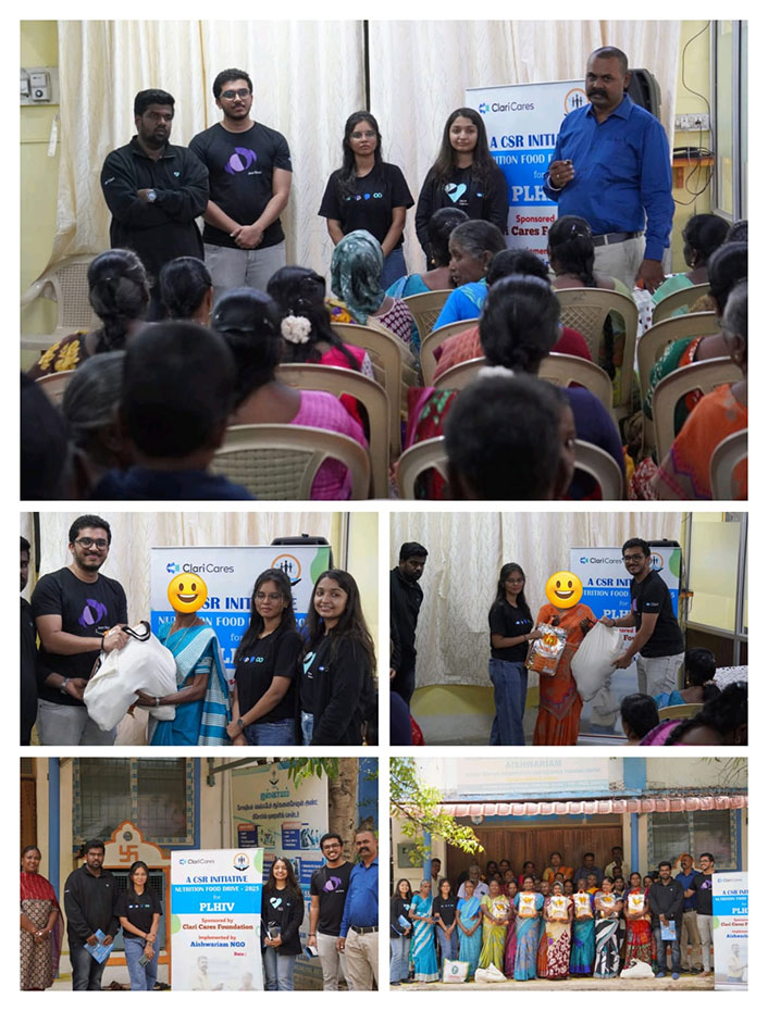 A Nutrition Food Drive -2025 for PLHIV was organised on 28.07.2025. This was a CSR Initiative sponsored by Clari Cares Foundation and Implemented by Aishwariam. The Event was to distribute Nutrition Food hampers to people living with HIV/AIDS. Around 25 families benefited from the programme. These families have been neglected and stigmatized by the Society and many families have been ostracized for the very reason of their illness.